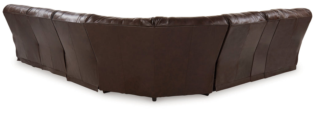 Bring home ultimate comfort with this power reclining sectional. Along with power positioning at the push of a button, its plush cushioning and pillow top arms ensure plenty of relaxation. The strikingly modern profile is wrapped in decadently soft leather and faux leather upholstery for a luxurious feel. A convenient USB charging port on the power control keeps you connected. Use the sectional's center console to keep drinks within arm's reach and to store remote controls and other necessities.