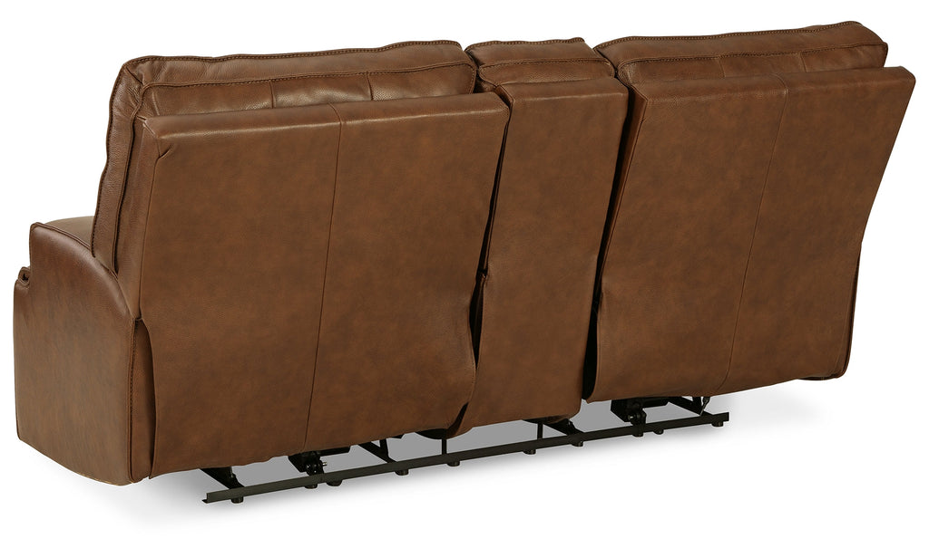 Master statement-making contemporary comfort with this power reclining loveseat. It displays a striking yet streamlined profile, with auburn-hued leather match upholstery balancing natural beauty and refined design. Adjustable headrests and USB charging polish off this richly crafted piece.