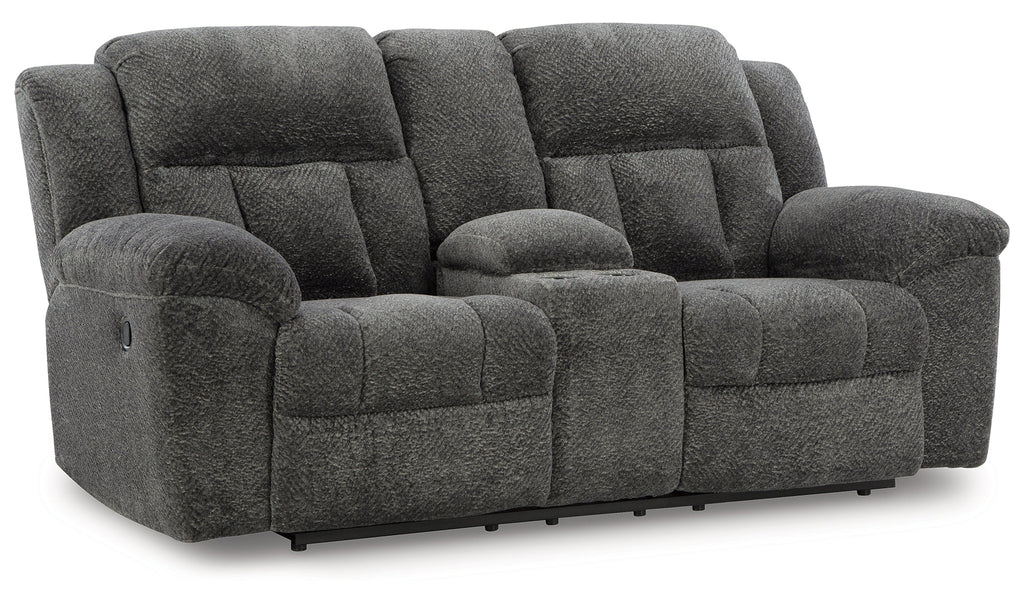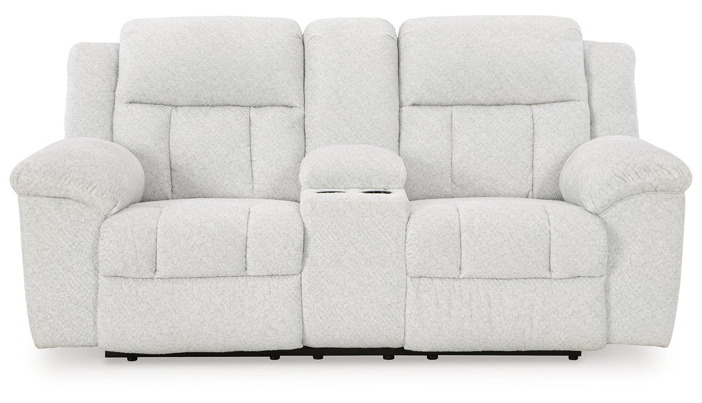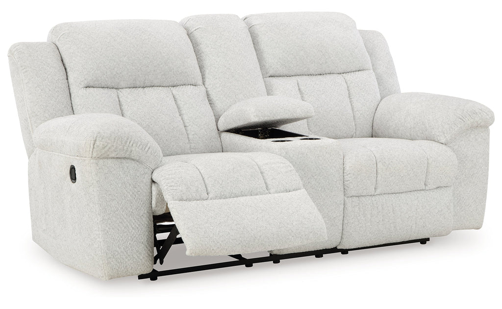 With its large-scale design, this extra-spacious reclining loveseat with console is a masterclass in accessible style. Plush, ultra-soft upholstery keeps everyone cozy as you lounge with family or guests. In a neutral hue, it seamlessly suits different aesthetics as your taste changes. Time to relax? The loveseat's pull tab reclining allows you to mellow out with ease.