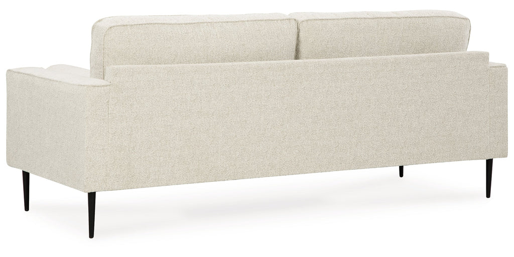Simple comfort meets modern function in this sofa. An apt addition to apartments and other small spaces, the slim-profiled piece welcomes you with its cozy character. A subtle chevron pattern on the cushions refresh the classic neutral hue, elevating the look while still suiting a variety of styles. Black accent legs add a dash of contemporary flair.