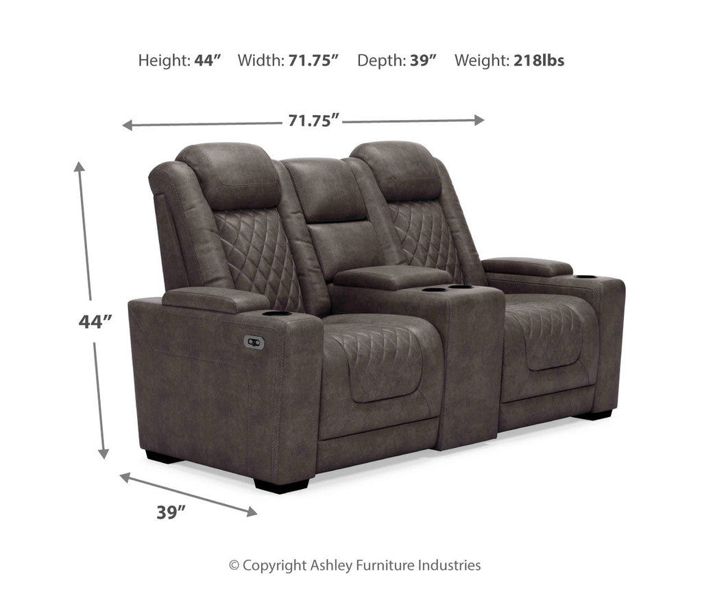 This power reclining loveseat in trendy gray is proof of just how far recliners have come when it comes to form and function. Ultra cool and contemporary, this fully loaded power reclining loveseat makes it so easy to social distance and make home your haven. Dressed to impress with diamond stitching inspired by sports car interiors, this reclining loveseat is covered in a fabulous faux leather with pebbled effect for authenticity. High-tech advancements include a one-touch power control with Easy View™ adjustable headrest and USB plug-in. Hidden storage compartments in the armrests and console are a welcome touch.