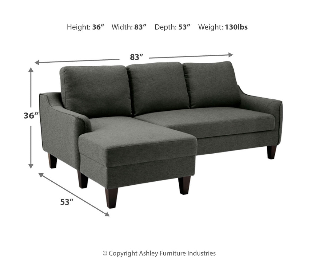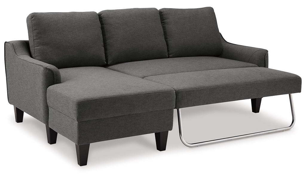 Small space living is easier than ever with this sofa chaise sleeper. The soft cushions and oversized pillow backs are sure to be a comfortable seating treat. Sporting sleek arms and friendly apartment sizing, this sofa makes a fashionable first impression, and is quick to convert into a sleeper with the included pullout cushion. Great to accommodate guests for an overnight stay.