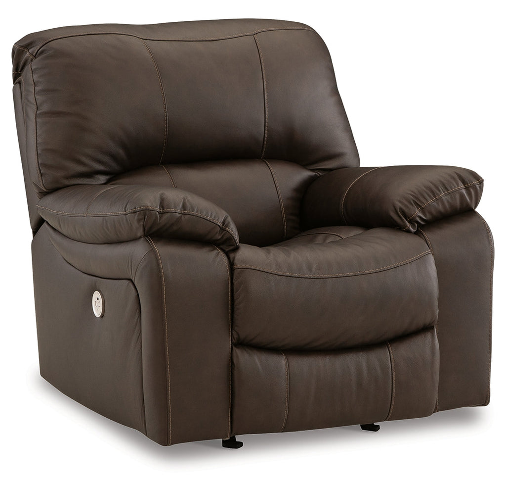 Focus on function. This practical power rocker recliner balances contemporary character and irresistible comfort. Its affordable, expertly matched leather and faux leather upholstery keeps your style up to speed without breaking the bank. Reclining with the touch of a button, this piece plays well in relaxed, luxe seating areas made for quality time.