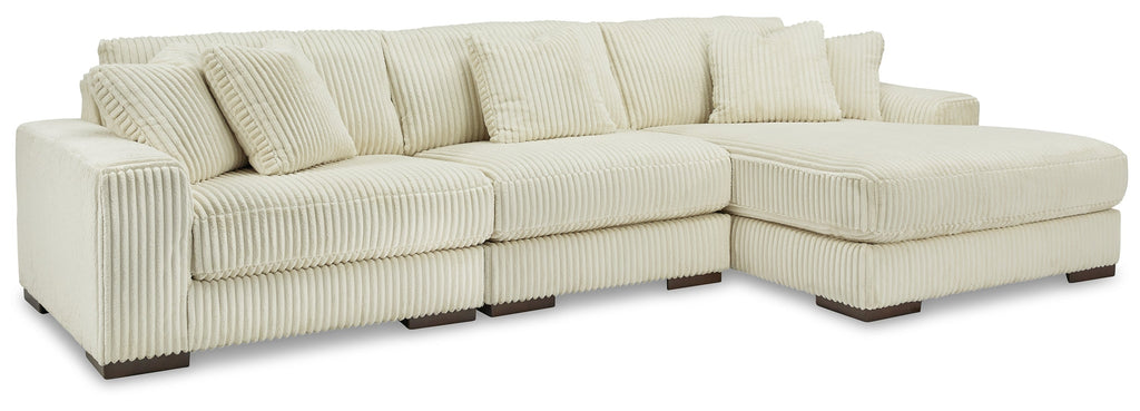Plush and posh. Showcase your eye for on-trend texture with the statement-making cord upholstery of this sectional with chaise. Its stunningly soft fabric entices in an ivory hue, complementing contemporary color palettes. Sink into the cushions and plan to stay a while—this cozy living room centerpiece highlights your high-end approach to comfort and style.