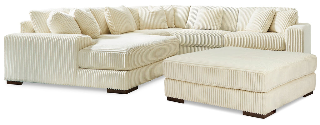 Plush and posh. Showcase your eye for on-trend texture with the statement-making cord upholstery of this sectional with chaise. Its stunningly soft fabric entices in an ivory hue, complementing contemporary color palettes. Sink into the cushions and plan to stay a while—this cozy living room centerpiece highlights your high-end approach to comfort and style.