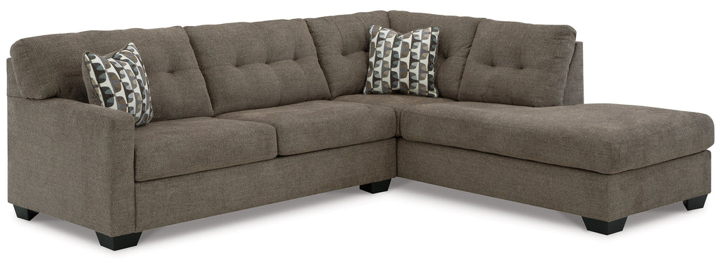 - Includes 2 pieces: left-arm facing corner chaise and right-arm facing sofa