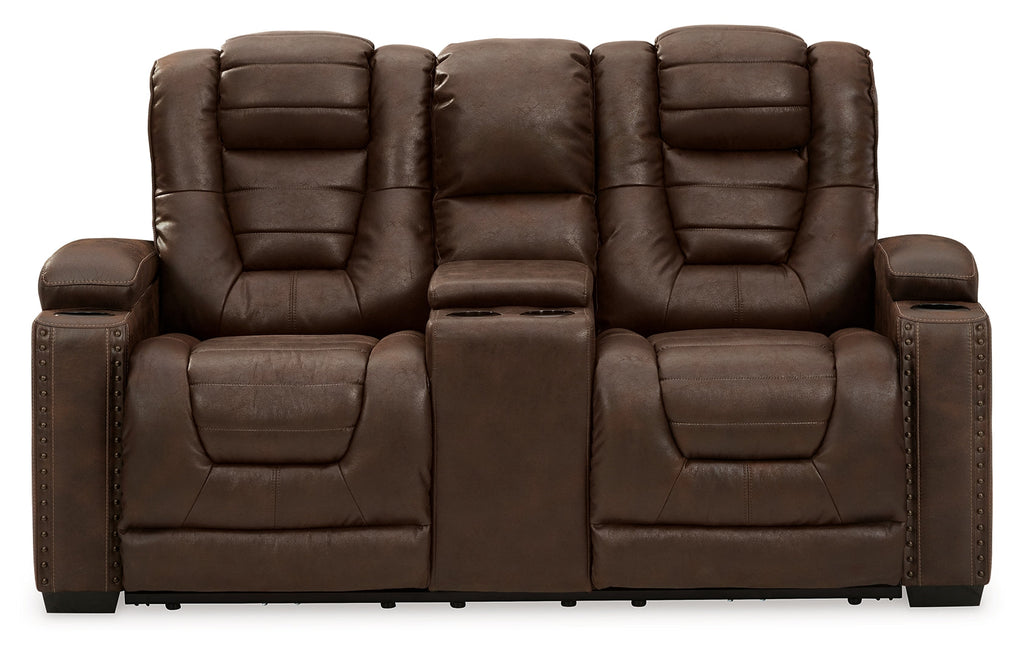When it comes to style, you’ve got game. Rest assured, this power reclining loveseat is sure to win you over with its ultra-cool looks and major league features. Showcasing all the bells and whistles, this designer reclining loveseat is inspired by sports car interiors—with a fabulous faux leather accentuated with horizontal channel tufting. An advanced one-touch power control with an Easy View™ power headrest puts you in the driver’s seat. On top of a cup holder and hidden storage on each armrest, you’ve got a center console with two more cup holders and storage for remotes and more.