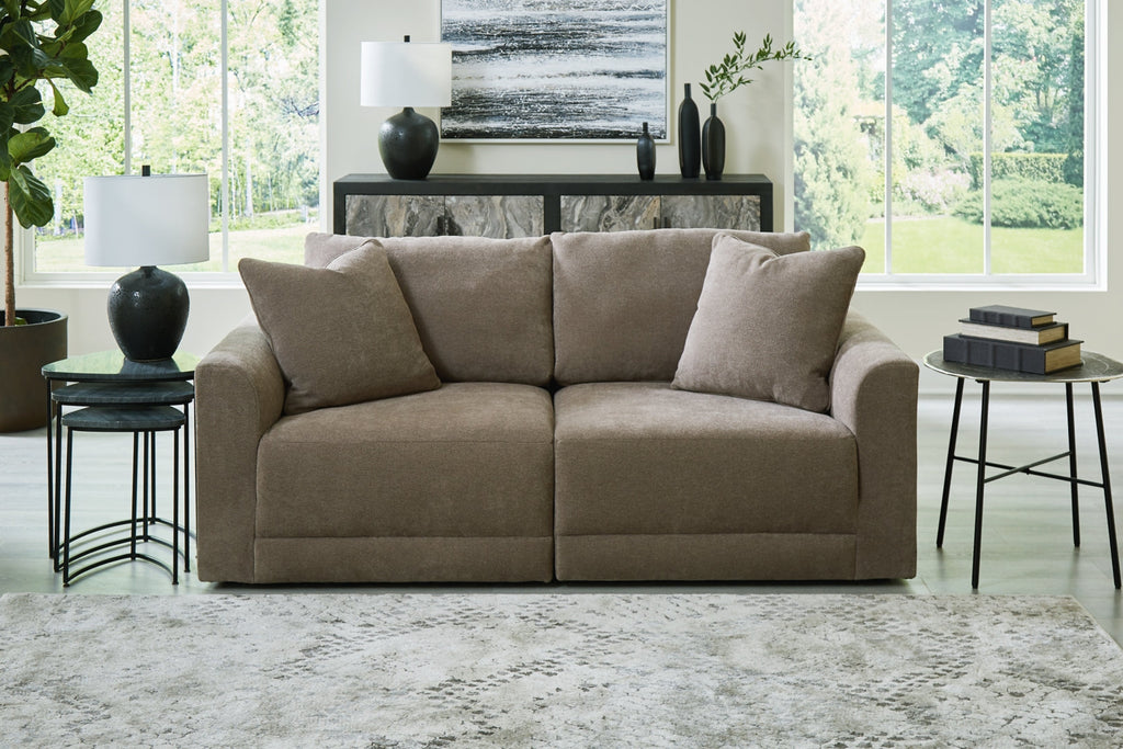 Curate a living room retreat that suits both your busy lifestyle and penchant for modern aesthetics with this sectional loveseat. Thick, plush seat cushions cradle you after a long workday or provide cozy support while you stream the latest TV show. The taupe upholstery slips into any contemporary scene with ease, while a modular design makes each individual piece striking from any angle.