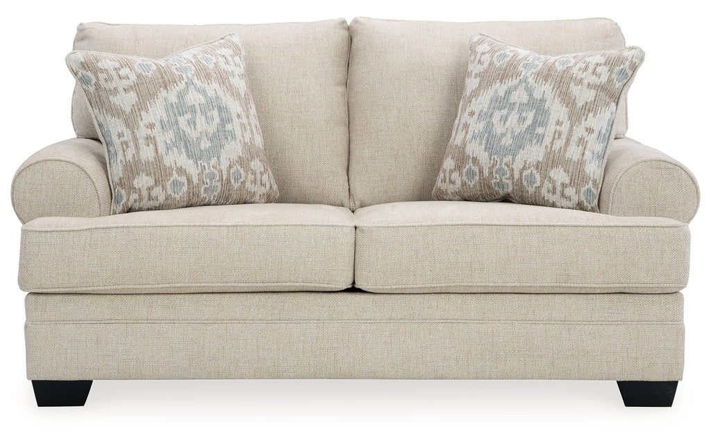 Generously scaled and richly versatile, this loveseat exemplifies the best in timeless classic style. It's splendidly tailored with transitional roll arms, for a look that's traditional yet far from stuffy. Light, fresh and loaded with multi-textural interest, the loveseat's soft chenille upholstery is pure pleasure for the senses. Accent pillows with soothing neutral tones are a natural fit.