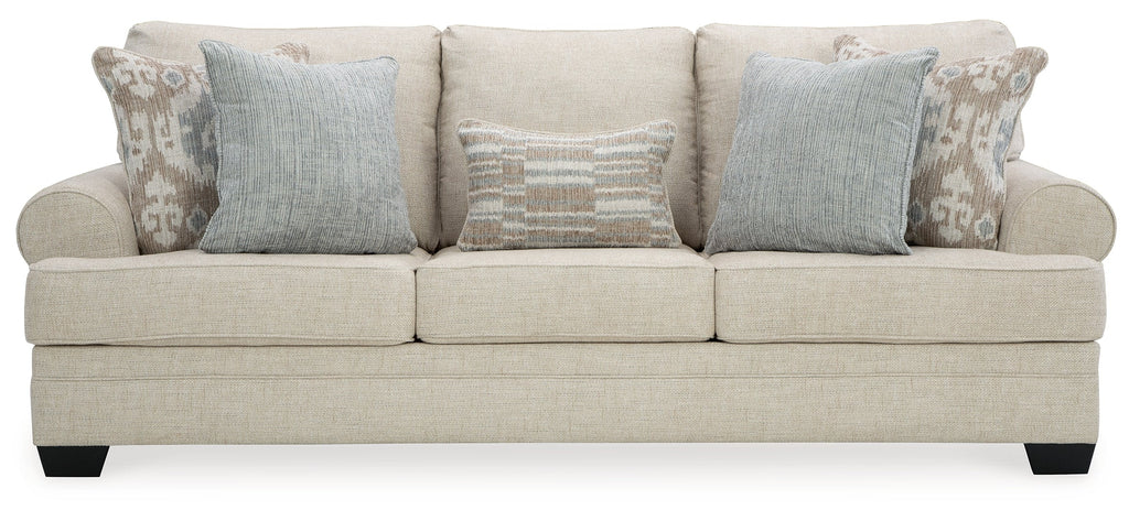 Generously scaled and richly versatile, this sofa exemplifies the best in timeless classic style. It's splendidly tailored with transitional roll arms, for a look that's traditional yet far from stuffy. Light, fresh and loaded with multi-textural interest, the sofa's soft chenille upholstery is pure pleasure for the senses. Accent pillows with soothing, neutral tones are a natural fit.