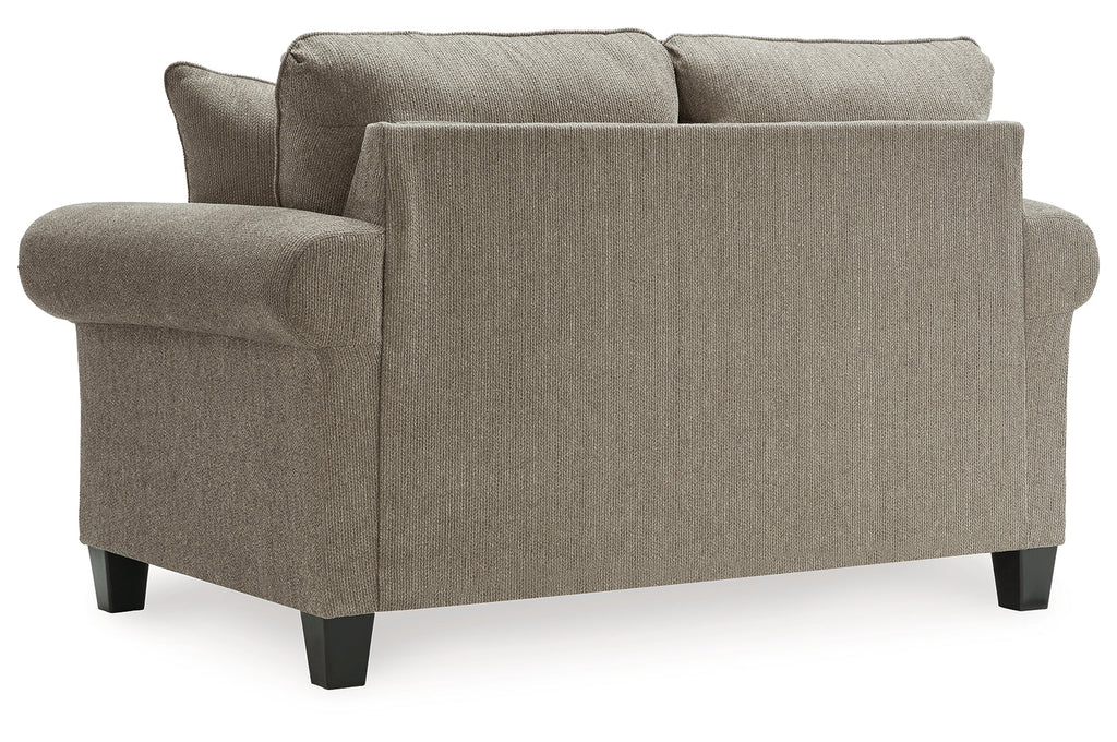 Sporting traditional elements including roll arms with nailhead trim, this loveseat gives here-and-now relevance to a classic style. The lovely pewter shade of the textured chenille upholstery brings a relaxed sensibility. Mix in contrasting tapered legs for a striking look you're sure to love for years to come.