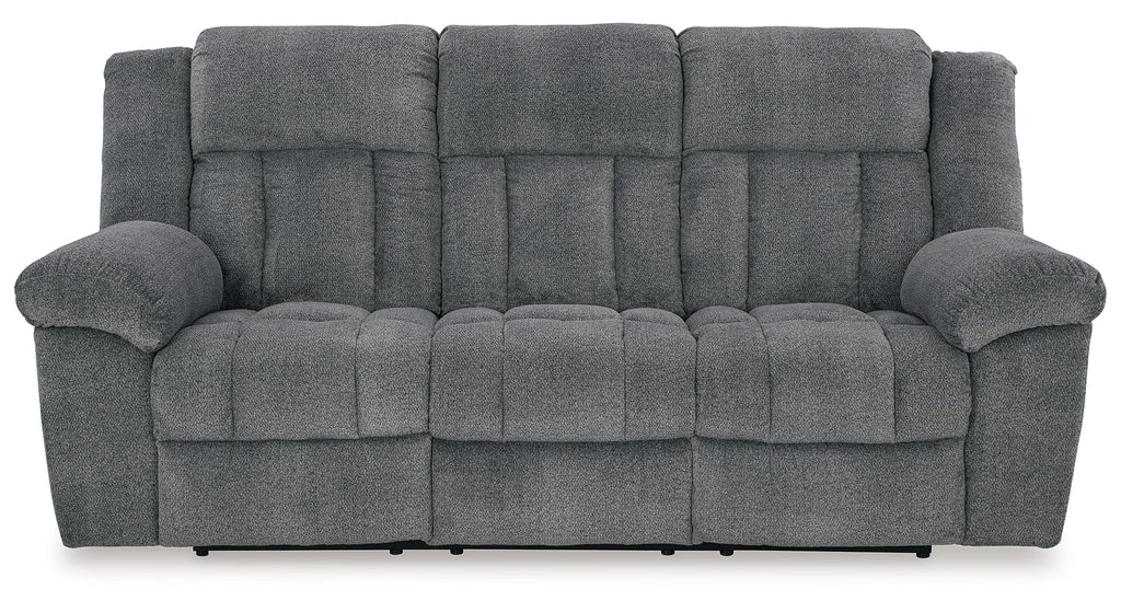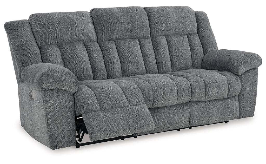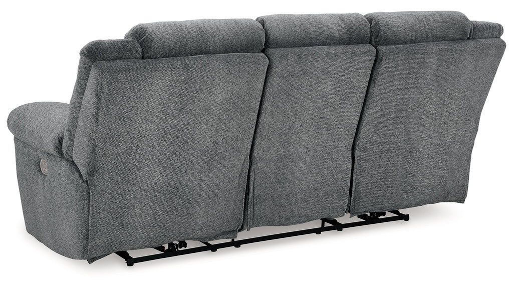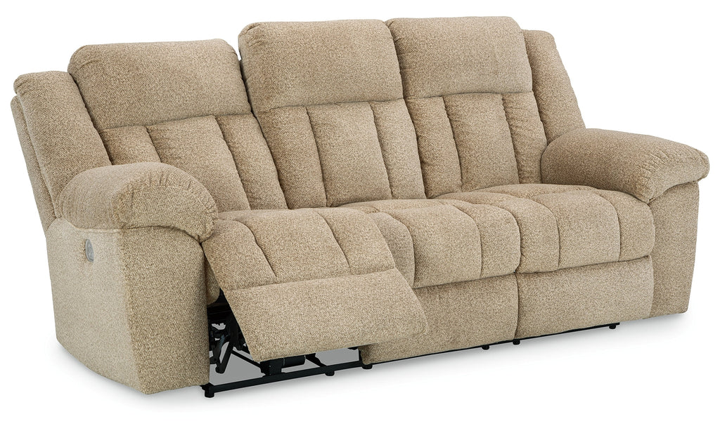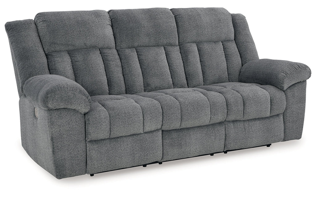 Big, bold comfort. Game time and movie nights meet their match with this power reclining sofa. Made for ultimate indulgence, an extra-deep seat encourages you to sit back and bliss out. Customize the recliner and headrest to find your ideal viewing position with effortless one-touch controls. And with plush upholstery in a trendy hue, you won’t need to sacrifice style for cozy seating.