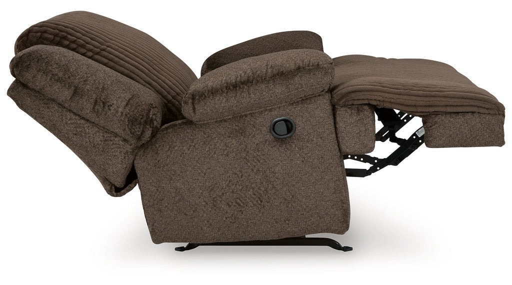 Experience unparalleled comfort with this rocker recliner. It’s a stylish and invitingly soft look—made all the more appealing by cozy corduroy cushions that feel great and add a touch of texture. The rich chocolate brown upholstery effortlessly blends into your decor, making it a gorgeous addition to your home. So sit back and unwind in this spacious recliner, perfect for gatherings with friends and family.