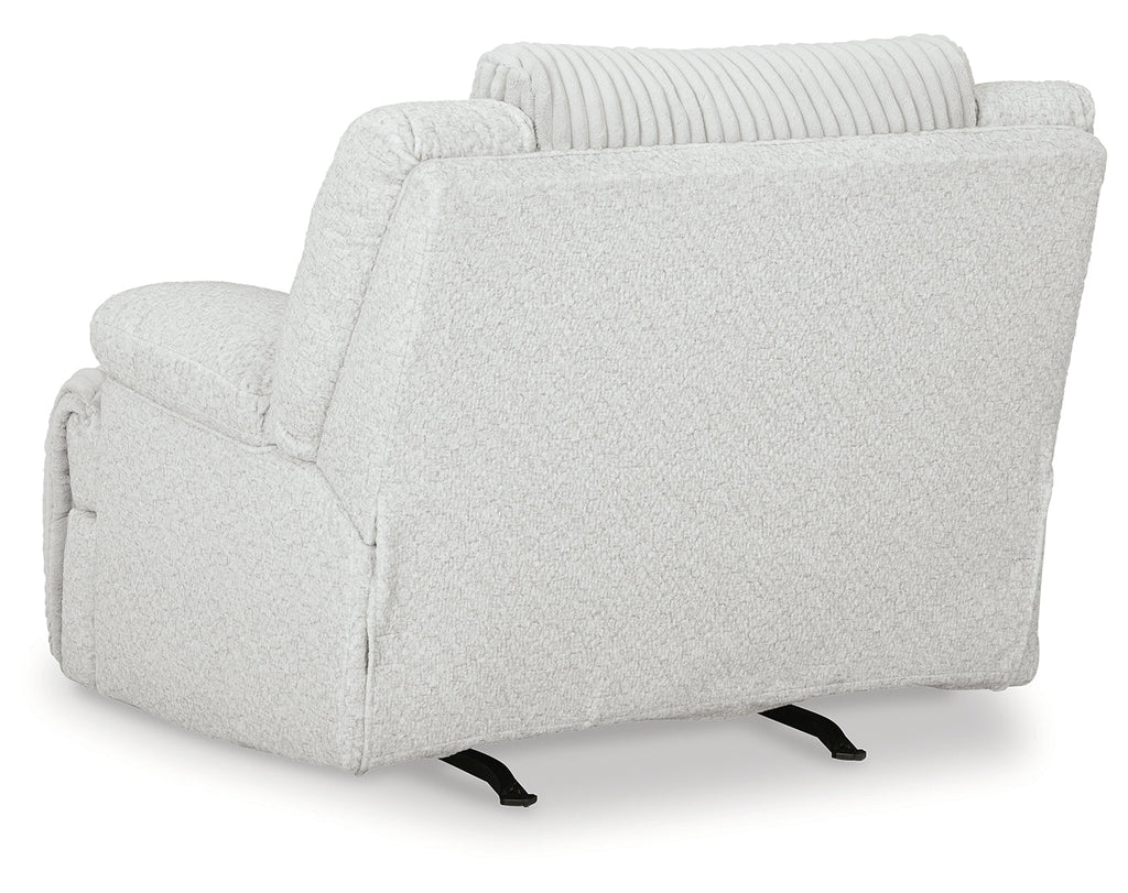 Experience unparalleled comfort with this rocker recliner. It’s a stylish and invitingly soft look made all the more appealing by cozy corduroy cushions that feel great and add a touch of texture. So sit back and unwind with the soothing rocking motion. The neutral hue effortlessly blends into your decor, making it a gorgeous addition to your home.