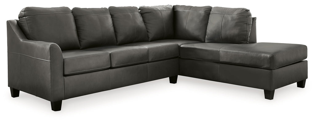 Luxurious lounging, everyday affordability. This sectional prioritizes comfort that suits your modern lifestyle. Its leather match upholstery indulges you in soft seating, with subtle dimension added by natural pebble detailing. Ending in tapered accent legs, this sectional is a chic way to complete your home’s central, contemporary hub for entertainment.