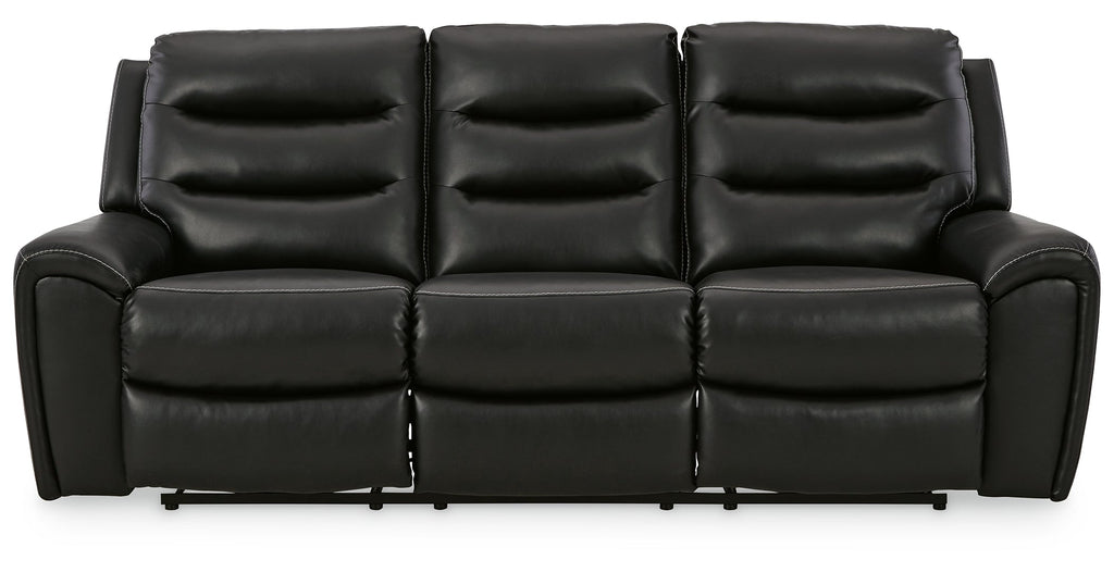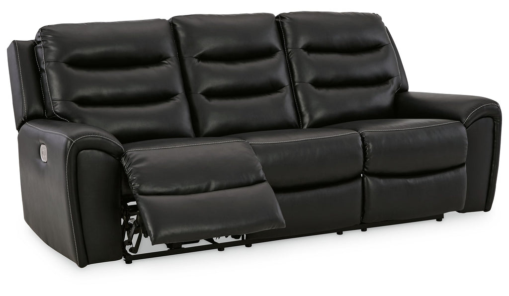 With its decidedly contemporary styling, this power reclining sofa has a sleek sensibility that seamlessly elevates your living room aesthetic. Explore endless possibilities for comfort with its one-touch power control, zero-gravity reclining and adjustable headrests. A triple-tier back and chic black upholstery round out this simply stunning piece.