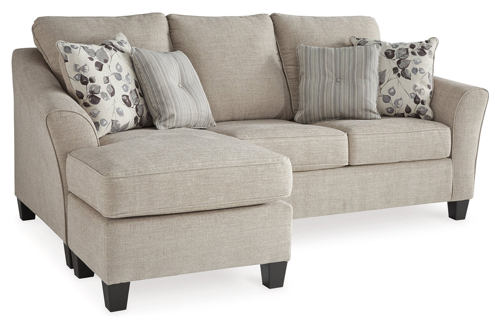 Raising understatement into an art form, this sofa chaise impresses with a tailored silhouette. Designed in a warm neutral color perfect in any contemporary home, this sofa chaise is wonderfully versatile with loose seat cushions that allow you to rearrange the chaise with the flip of a pillow. Coordinating toss pillows complete this look for a style that feels right at home.