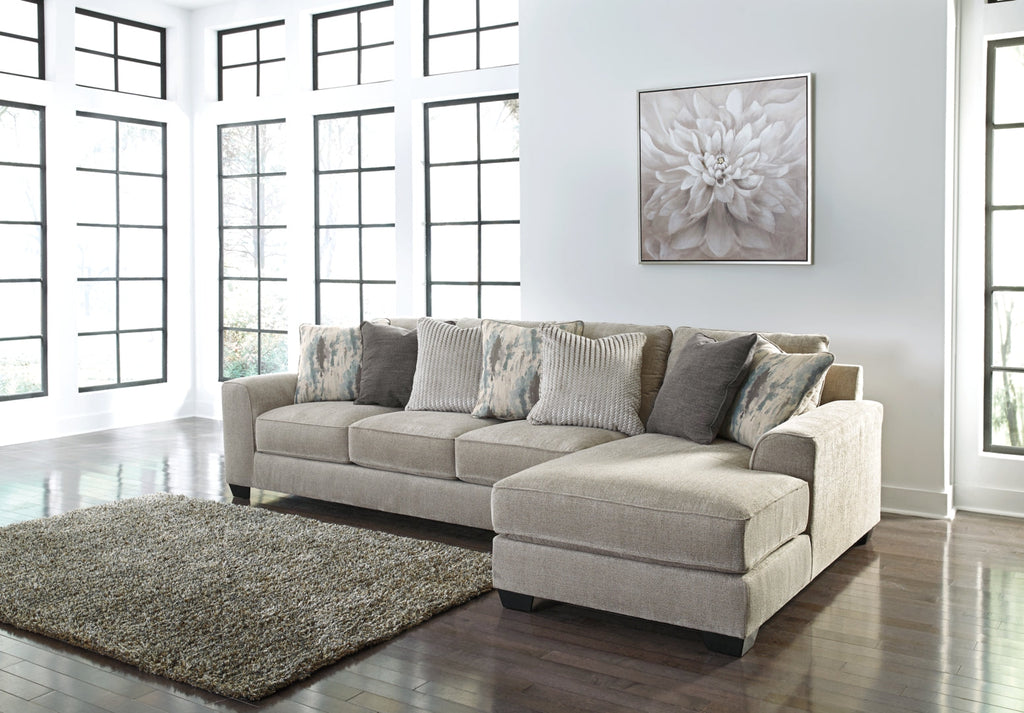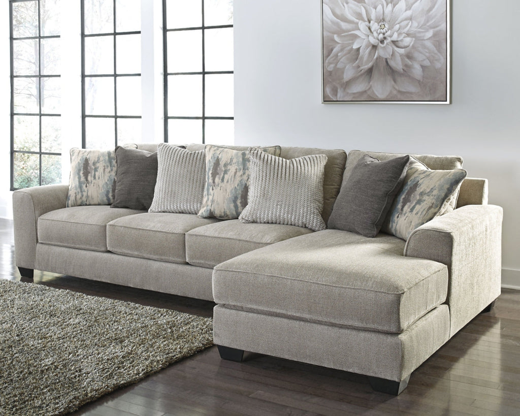 - Includes 2 pieces: left-arm facing corner chaise and right-arm facing loveseat
