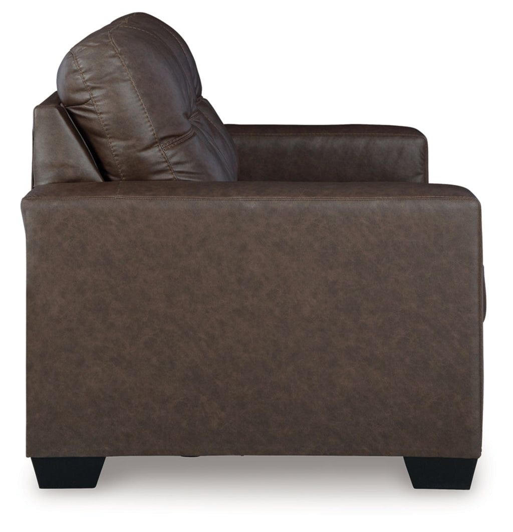 Everyday comfort meets versatile style in this loveseat. The handsome hue of the goes-with-anything faux leather takes away the stress of styling, expertly pairing with your existing aesthetic. From kicking back on the weekends to relaxing post-work, living room lounging has never been so chic.