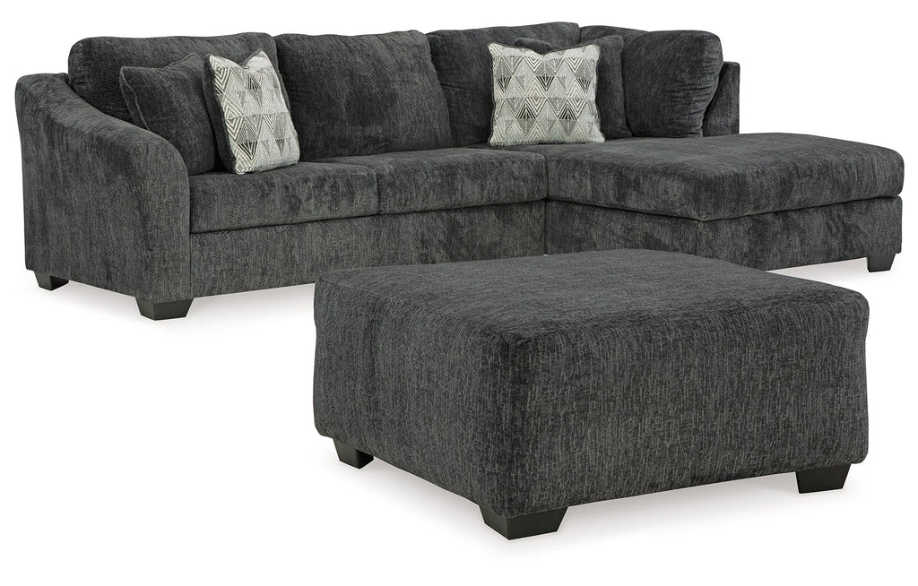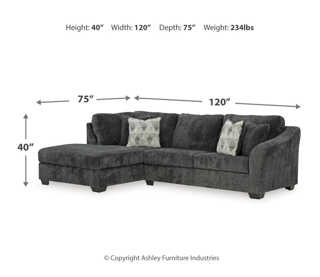 - Includes 2 pieces: left-arm facing sofa and right-arm facing corner chaise