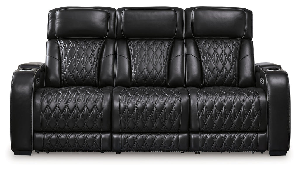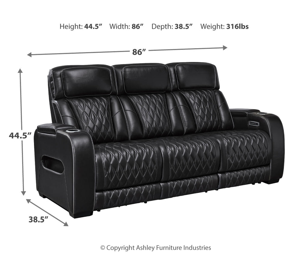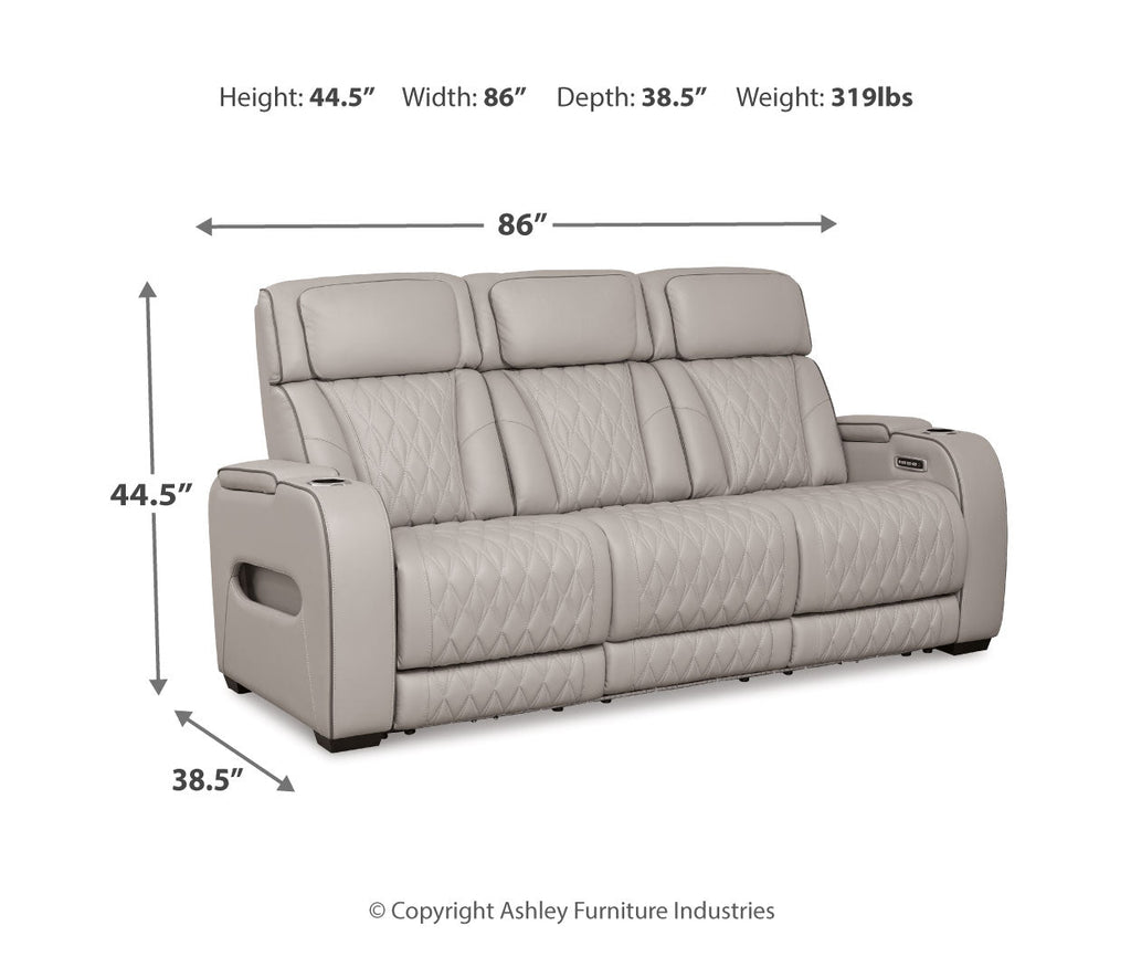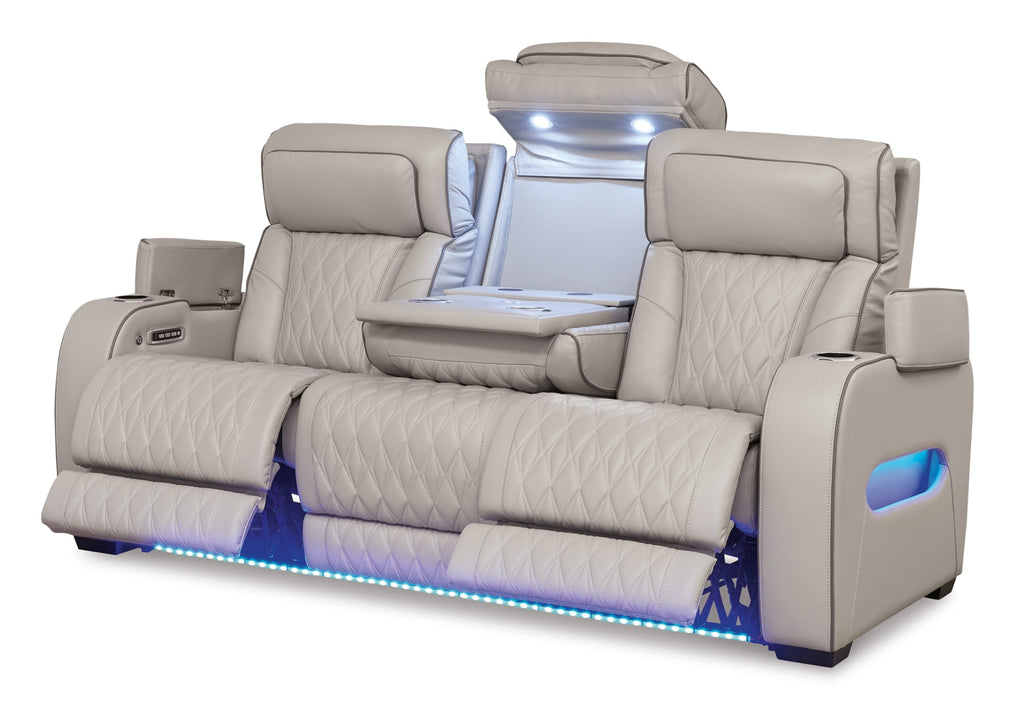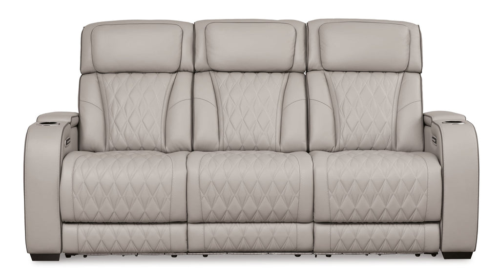 Ready to take your reclining experience to the next level? Then sit up and take notice. With this power reclining sofa, ultimate relaxation is at your fingertips. Experience the pure bliss of an air massage system and heated seats at the touch of a button. The center seat is crafted with a drop-down table with wireless charging and dual cup holders. Plus the luxurious diamond-stitched upholstery is easy on the eyes, adding elegance to any space.