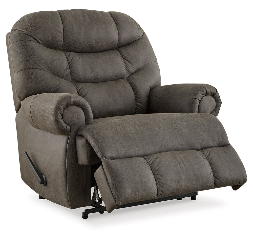 Spacious for comfort and traditional for style, this large-scale recliner is the perfect picture of reclined relaxation. The generous seat and tall back are specially crafted to provide extra support and comfort for broader and taller individuals. Pillowy soft cushions upholstered in rich faux leather treat your body to luxury, while one smooth pull eases you back in the recliner you've been looking for.