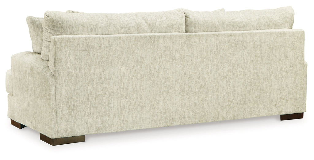 Easy on the eyes and irresistibly comfortable, this sofa is covered in luxurious chenille microfiber in a light, neutral hue that blends beautifully in a room. Wide track arms have a contemporary look and plush cushions cradle you comfortably. Textured accent pillows in complementary colors add subtle contrast.
