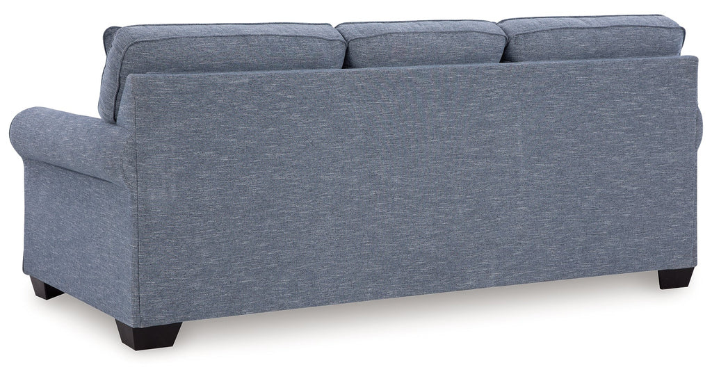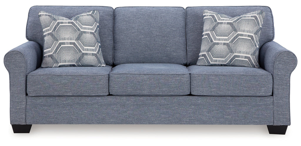 This queen sofa sleeper is defined by comfort, convenience and classic style. Soft to the touch and stain-resistant, the family-friendly Next-Gen Nuvella™ fabric is easy to maintain. And you'll love the universal appeal of its denim-inspired hue. And there's always room for guests thanks to the convenient pull-out mattress. With roll arms adding a dash of traditional flair, this sofa sleeper is a simply chic approach to everyday relaxation.