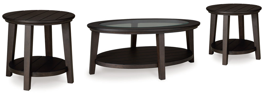 If you're looking for accent pieces with traditional elements that also fit in modern farmhouse settings, you've found them. A rich finish bathes this occasional table package, adding a lovely dimension under the glass inset tabletops. Place them in your living room and enjoy the timeless casual styling this set brings to your home.