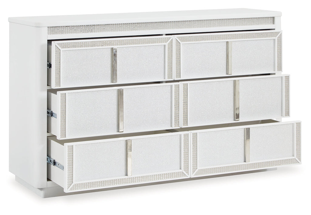Transform your bedroom with this dresser. Its modern design and glamorous details create a sophisticated retreat. The built-in LED lighting and rhinestone-framed drawers add style and practical storage. Let your sanctuary shine—and never let anyone dull your sparkle.