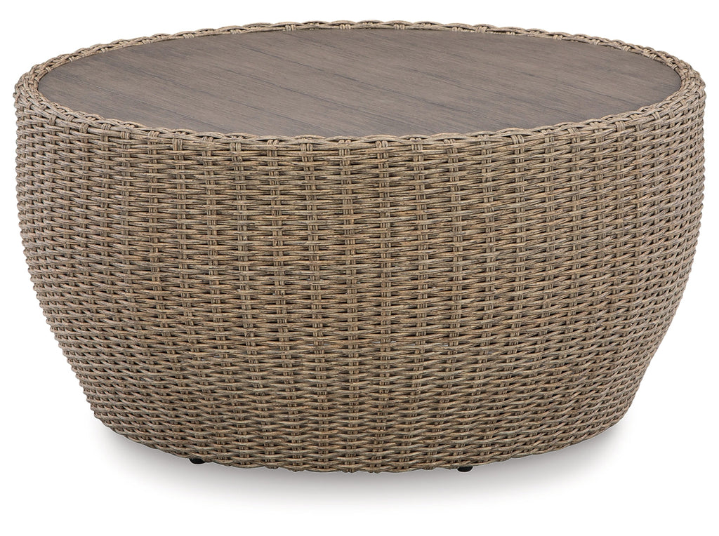 This coffee table completes your outdoor seating area with its fresh take on casual comfort. Handwoven resin wicker over a curving frame balances streamlined style and exceptional durability. An aluminum top polishes off the piece, acting as a perfect perch for snacks, beverages and decor.