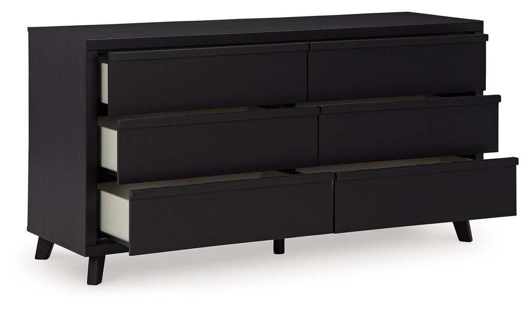 Sophisticated style for the savvy shopper. This dresser prioritizes affordable, on-trend design. Its subtle replicated texture recalls the natural beauty of wood, highlighting the slatted styling. And a matte black finish savvily suits different approaches to modern aesthetics. Mix and match with light and bright hues, or pair with other dark tones for a moody look.