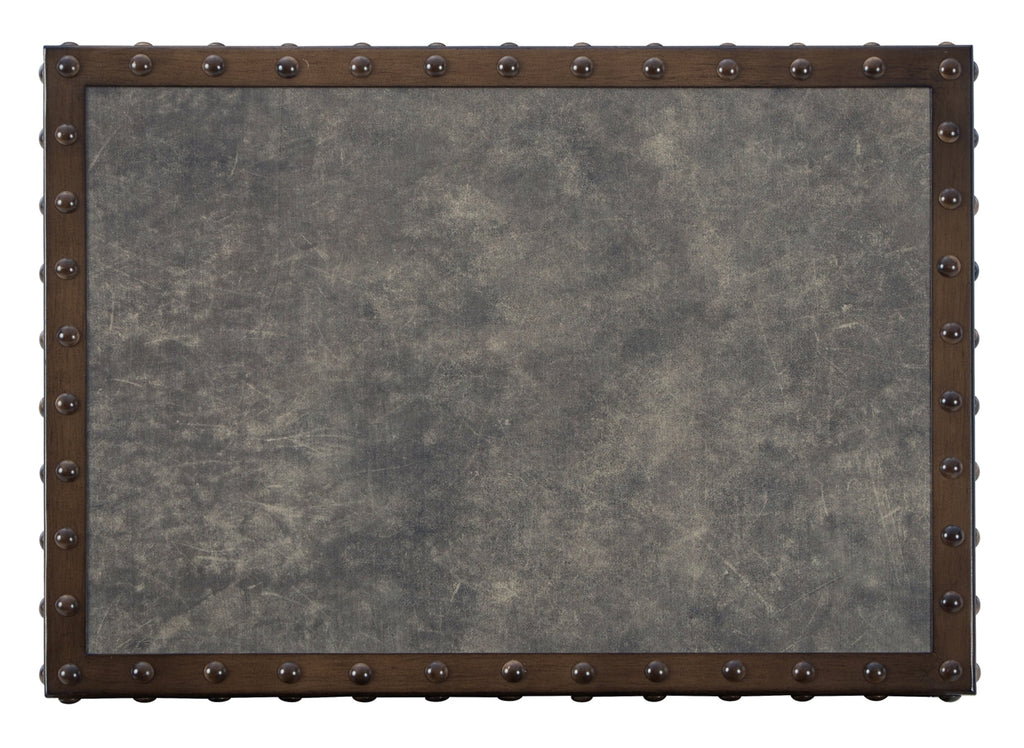 - Metal accent trim finished with a faux leather color