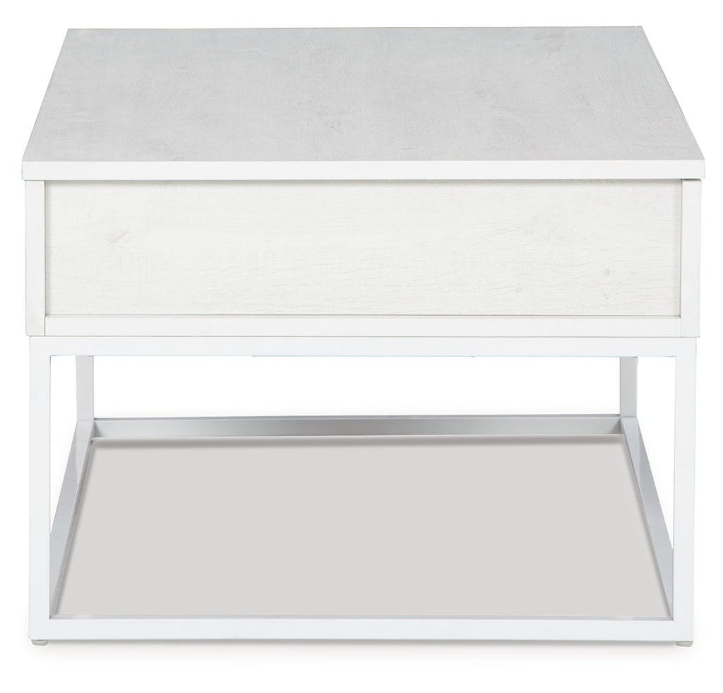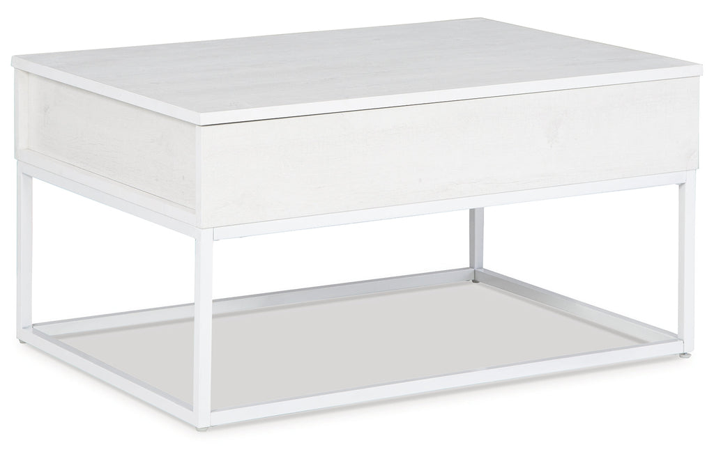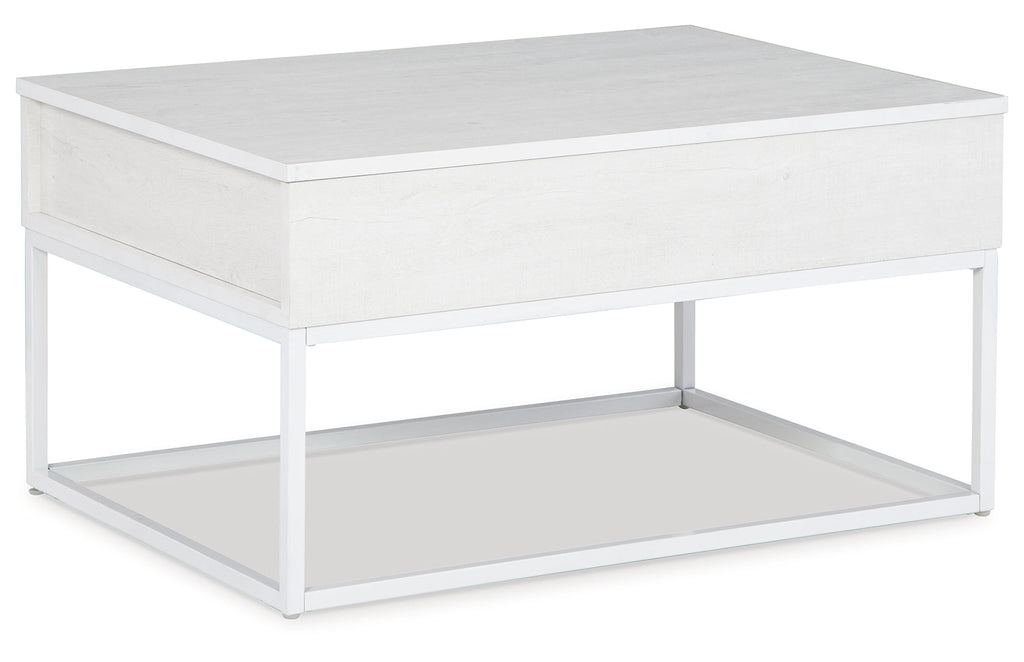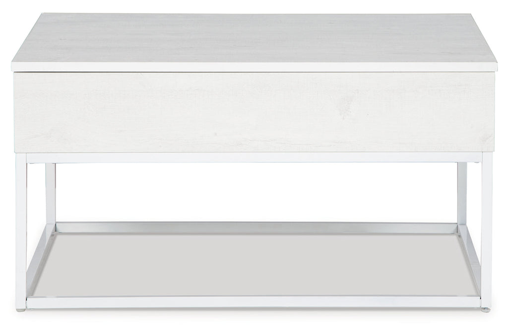 Bring your vision of a modern living room to life with this sleekly designed lift-top coffee table. Its linear construction and white finish keep things minimal. The lift top keeps your morning coffee, laptop or favorite book within your reach in simply streamlined style. Two small storage bins underneath the top round out this versatile, striking piece.