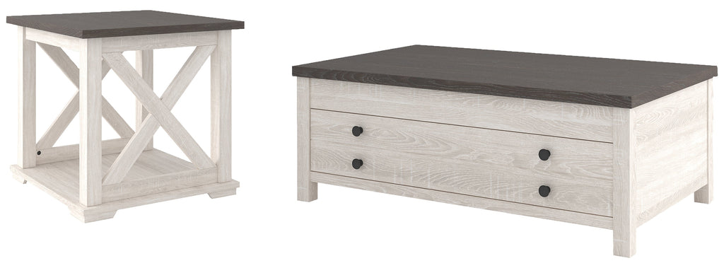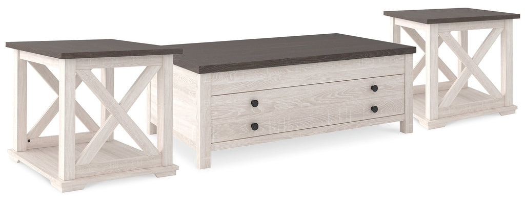 Raise the bar on modern farmhouse design with this versatile table set. Sporting a two-tone, gray and antiqued white color scheme and crossbuck design, this set makes a statement wherever it lands. Packed with possibilities, this multipurpose grouping makes it easier than ever to eat, work or play from the comfort of your sofa.