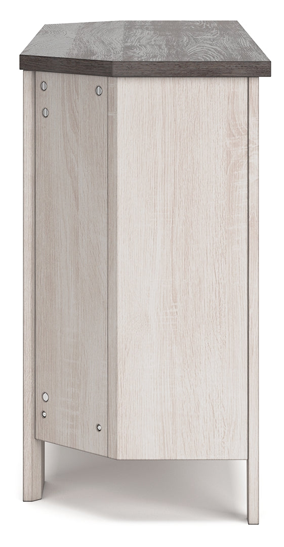 With its minimalist charm, this TV stand is right in tune with your relaxed approach to high style. Beautifully shaped to nestle into any corner, it’s well equipped with a flexible open-concept design and cutouts for wire management that enhance the clean-lined aesthetic. The look is ideal for modern farmhouse and contemporary settings.