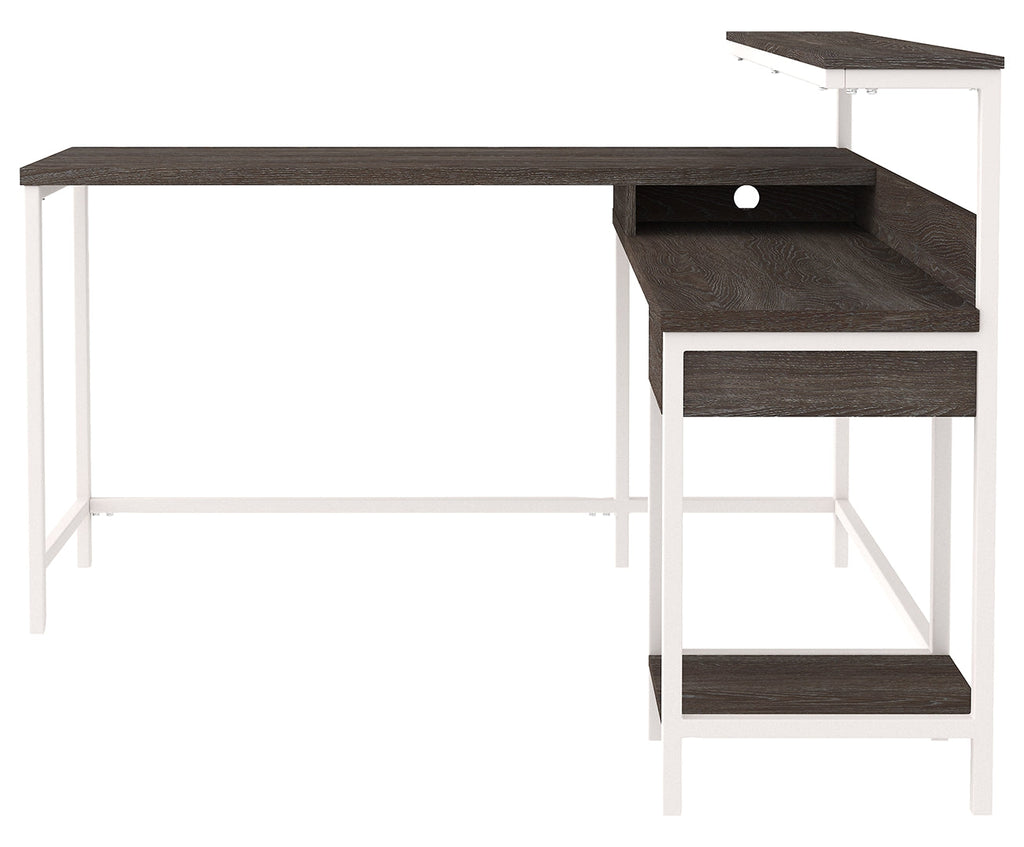 More than just a beauty to behold, this home office L-desk is designed to raise your productivity by packing more work area into less space. Sporting a two-tone finish, it’s ready to take a cool stance for modern farmhouse style. Pair with the bookcase (sold separately) for a well-organized home office.