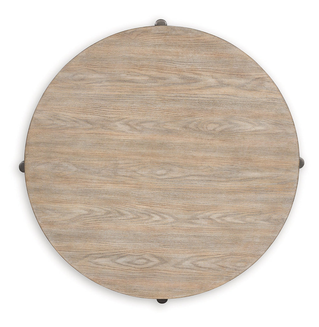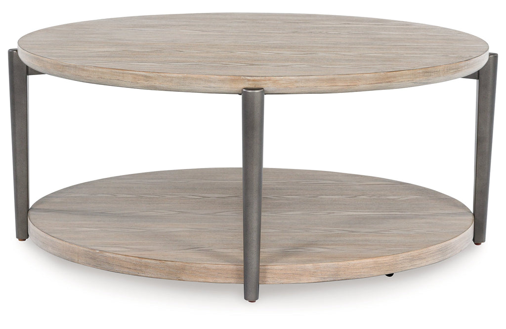 Merging industrial and contemporary elements, this coffee table turns display space into an art form. The whitish brown wood-tone finish is right on trend, while contrasting painted metallic legs offer a modern touch of stripped-back beauty. With its streamlined design, this table proves that less is more.