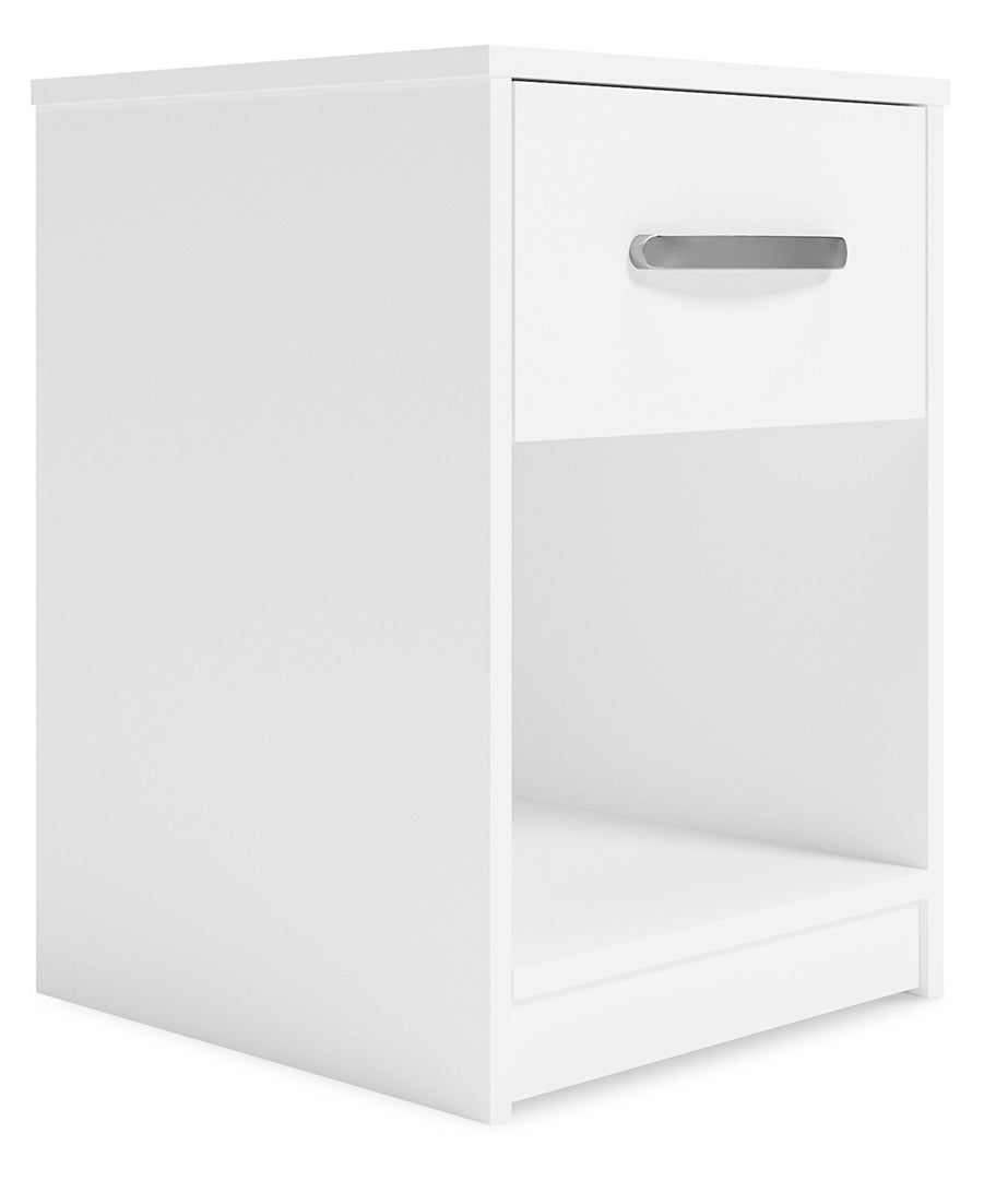 This nightstand has simple lines and contemporary styling, allowing it to blend seamlessly with any decor Its smooth-gliding drawer on metal ball bearings is ideal for bedside essentials. An open cubby provides a nice place for a storage basket or vase. The sleek metal pull in a brushed nickel-tone finish adds to the streamlined aesthetic. Combine with other units in the collection to create a room that’s sleek and stylish.