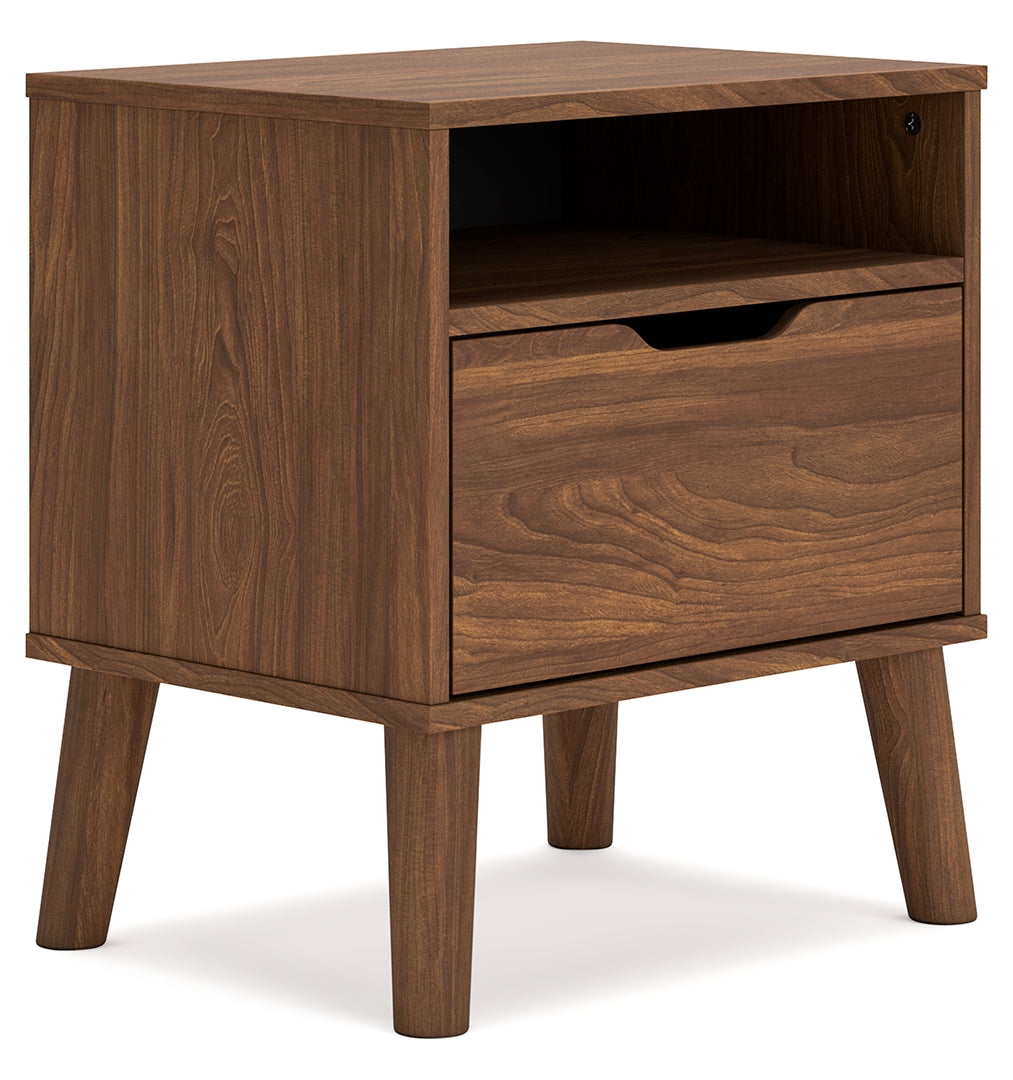 What do you get when you mix a minimalist profile with a warm finish? With sleek simplicity and a rich auburn hue, this nightstand delivers cool, contemporary style with a nod to mid-century modern design. A hardware-free aesthetic and a spacious drawer packed with bedside storage possibilities complete your restful retreat with exceptional form and function.
