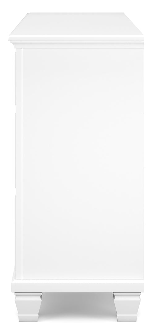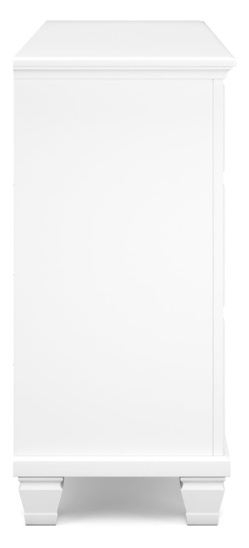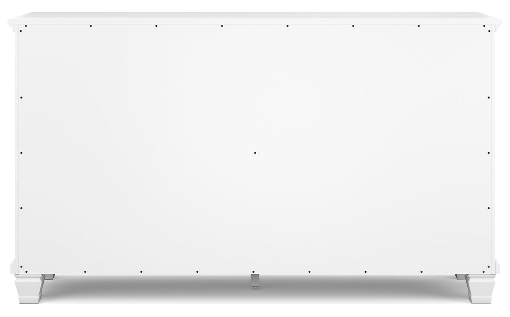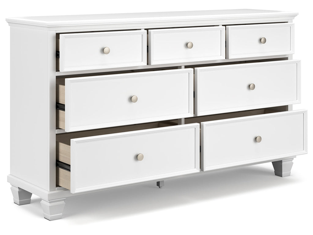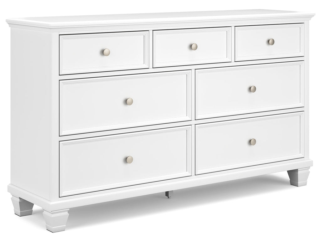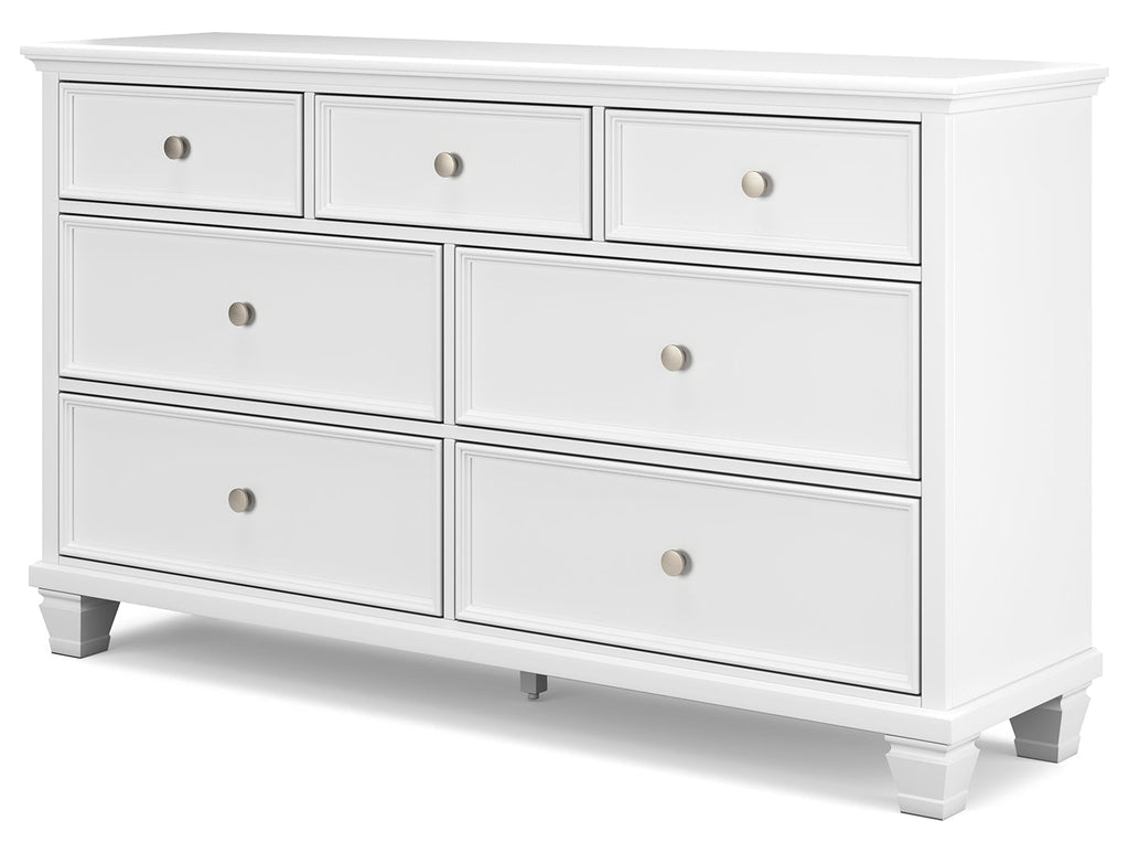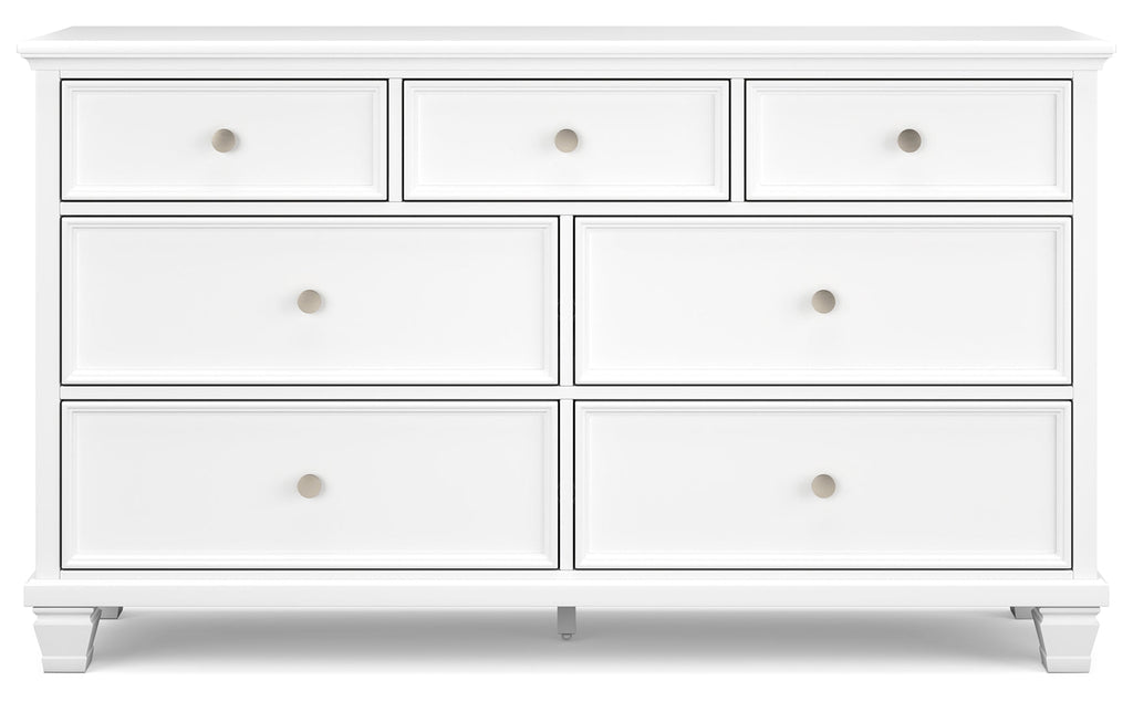 This dresser exudes timeless casual design that's ready to define your personal space. Its clean, contemporary white finish, framed drawer fronts and round metal knobs easily adapt to a variety of interiors. Featuring seven storage drawers with dovetail construction and traditional tapered feet, this piece is sure to bring elegant simplicity to your bedroom.