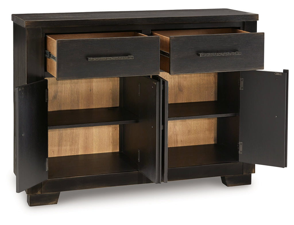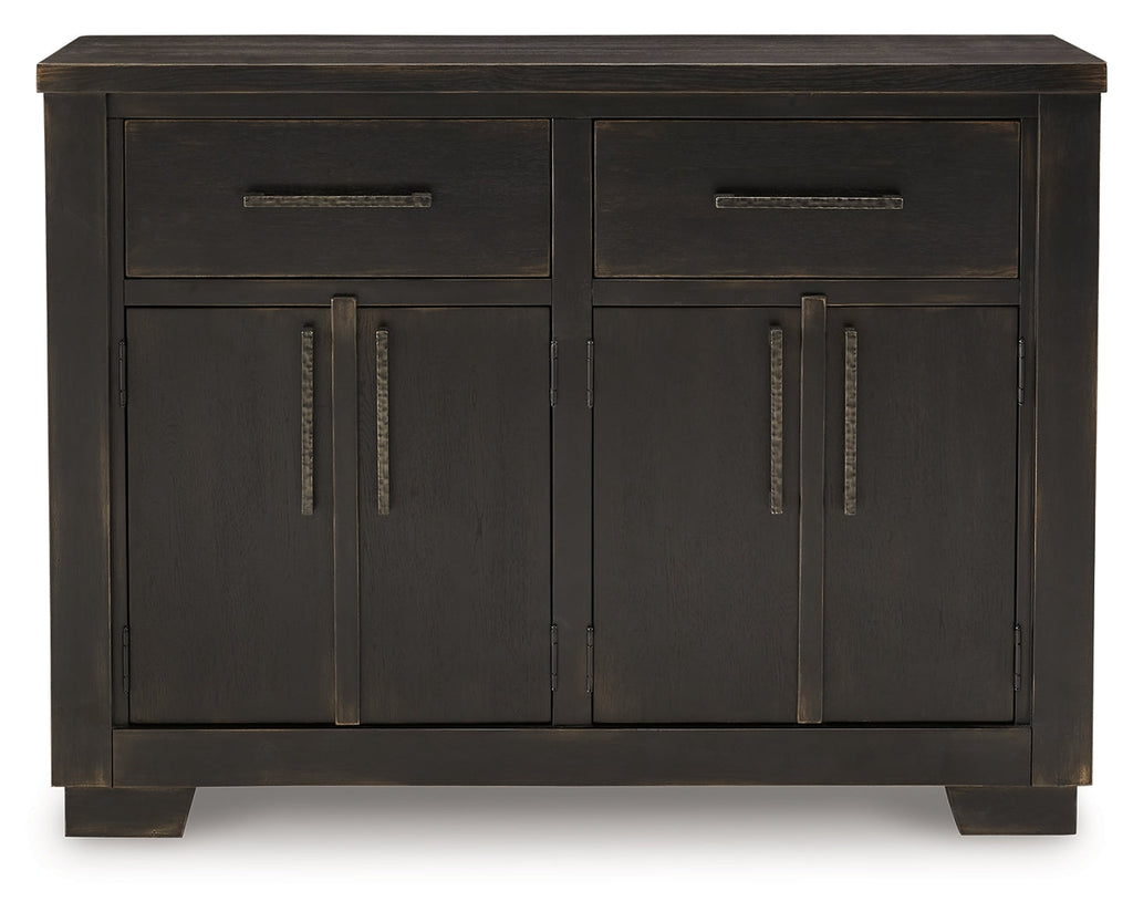 This dining buffet brings a rustic vibe to urban contemporary design. It’s a modern approach to natural beauty, with an aged black finish defining the piece. And the buffet's color palette is stunningly simple, allowing it to coordinate seamlessly with your existing decor.