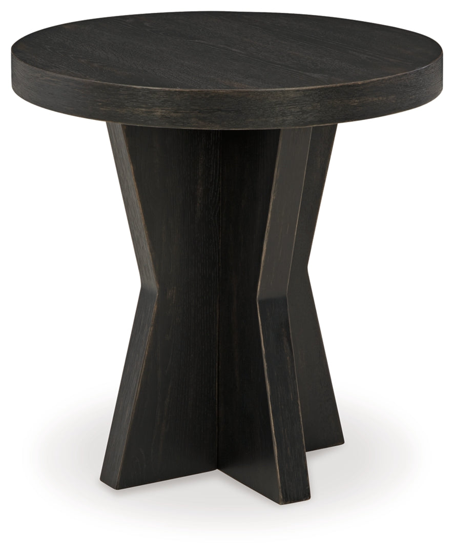 This end table brings a rustic vibe to urban contemporary design. It’s a modern approach to natural beauty, with an aged black finish defining a unique geometric base. And the stunning simplicity of its color palette allows you to seamlessly coordinate this table with your existing decor.