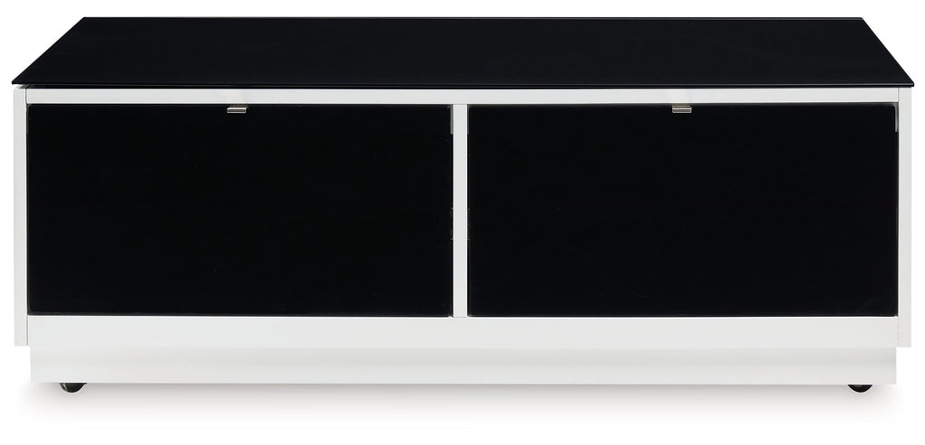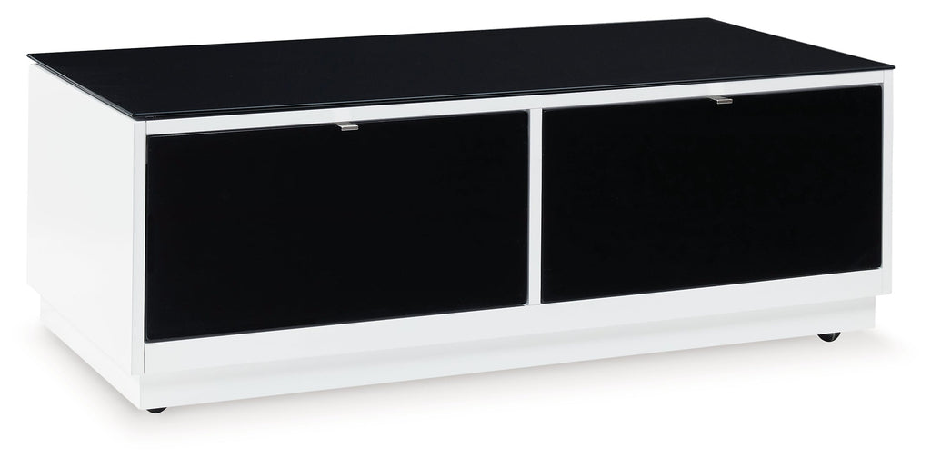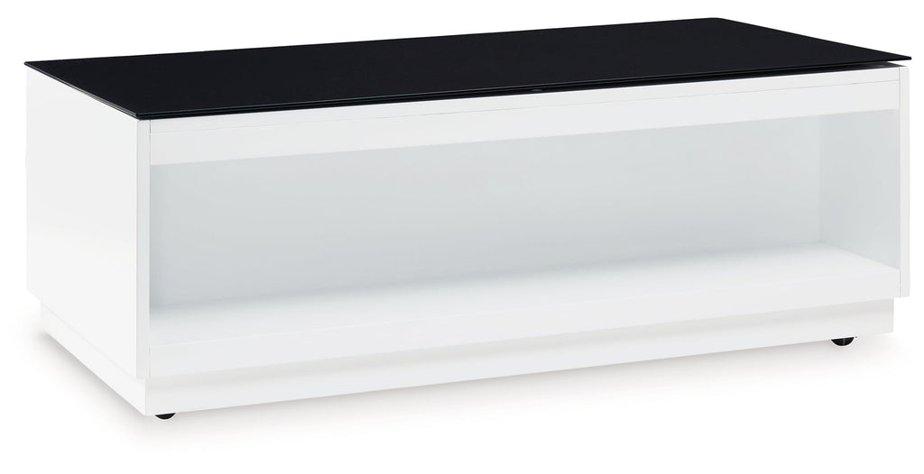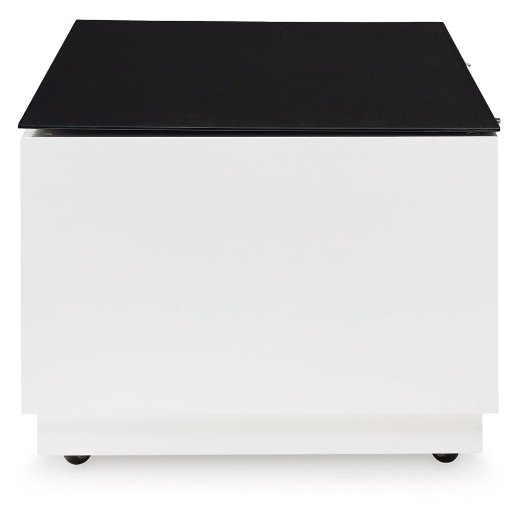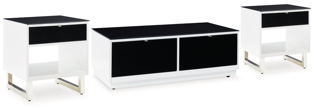 Combining a high-gloss white finish with a black glass tabletop, this occasional table package proves opposites really do attract. It's the perfect blend of modern style and functionality. With plenty of storage space, this set is a smart choice on so many levels.