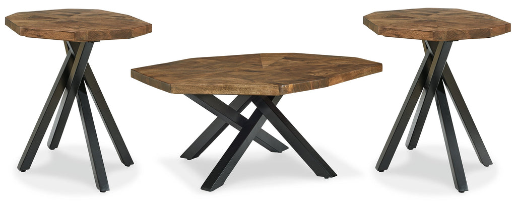A breath of organic beauty for the contemporary home. The Haileeton occasional table package works well in conversation with your curated furnishings, with irregular starburst pattern tops and black metal bases bringing a refined touch to natural stylings.