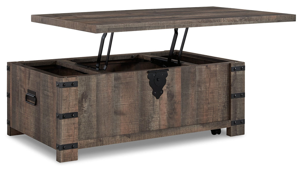 Keep your aesthetic chic and approachable with this occasional table package. The charming tables have an effortless beauty, with a replicated aged barn wood pattern and matte black metal accents adding vintage-inspired elegance. Combining fashion and function, the lift-top design offers a table area or a workspace while a lower shelf is ideal for displaying decor.
