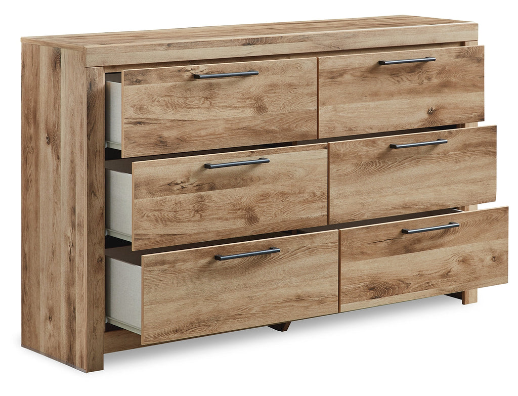 Inspired by natural beauty, refined to perfection. This dresser brings cozy outdoor vibes to your bedroom with its warm and inviting golden rustic finish. Handles in an antiqued gunmetal hue adorn the six drawers on its framed front, adding an industrial touch to the simple, streamlined design.