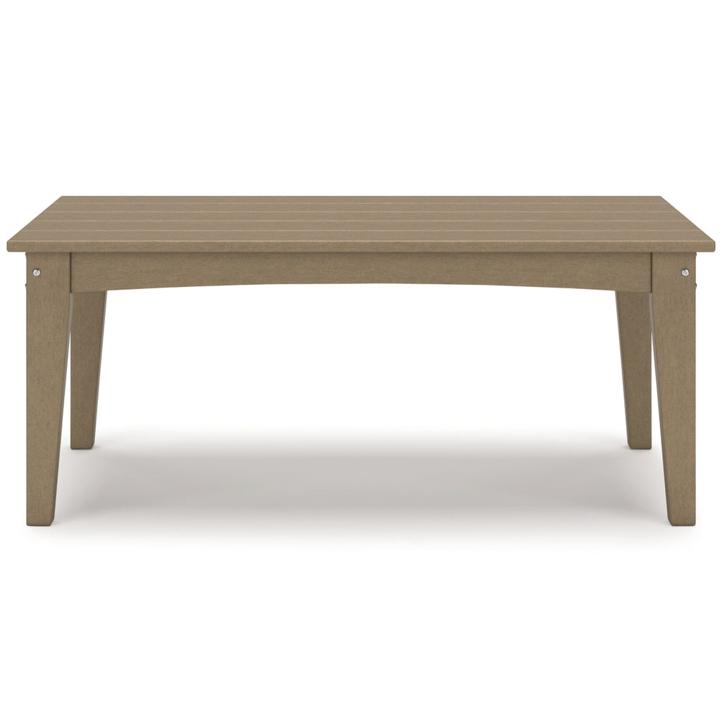 Drift into outdoor entertainment bliss with this coffee table. Dressed in an inviting driftwood hue with a classic feel, it weathers sunny summer days and cozy winter nights with durable MEGA TUFF™ HDPE material. When it comes to form and function, the table's rain-shedding slatted design simply goes with the flow. Use it to hold outdoor decor, drinks or snacks.
