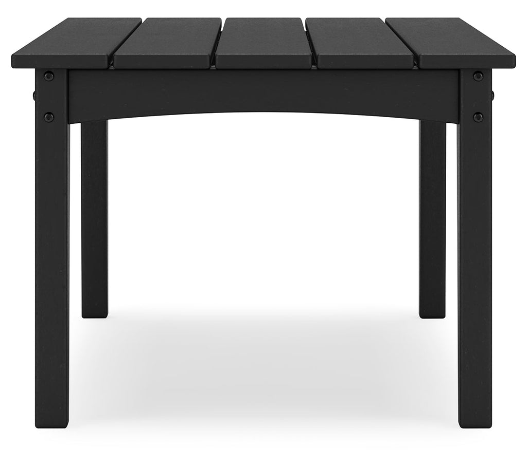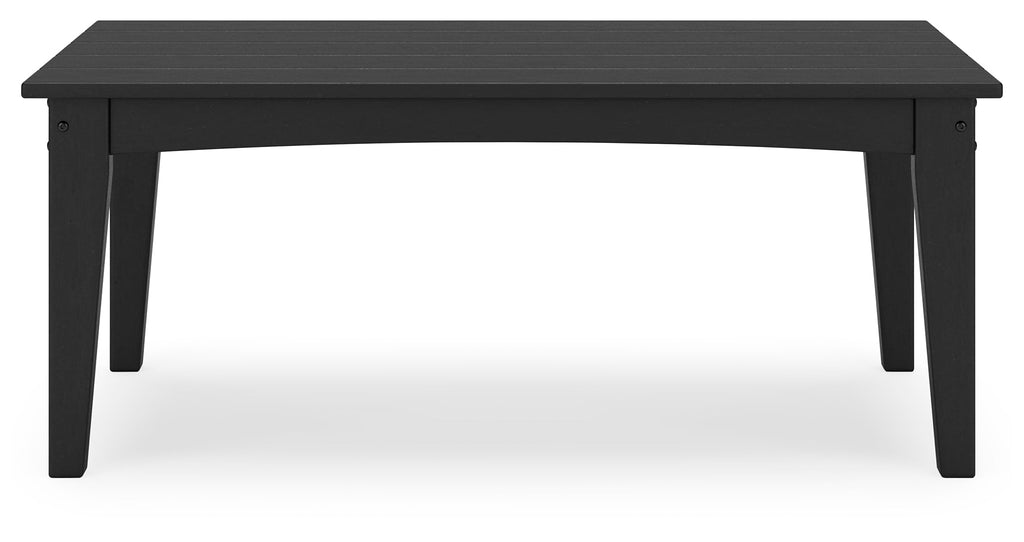 Drift into outdoor entertainment bliss with this coffee table. Dressed in a smart black for a sophisticated feel, it weathers sunny summer days and cozy winter nights with durable MEGA TUFF™ HDPE material. When it comes to form and function, the table's rain-shedding slatted design simply goes with the flow. Use it to hold outdoor decor, drinks or snacks.