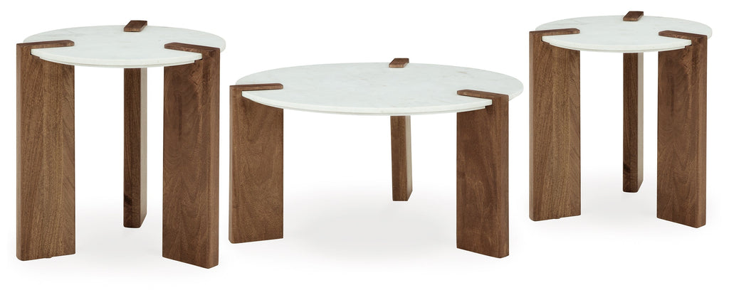 With its back-to-nature sensibility, this occasional table set is a natural fit for outfitting your modern living area. Its clean-lined design lets the beautifully organic quality of the mango wood shine through, complemented by the sleek refinement of marble tops.